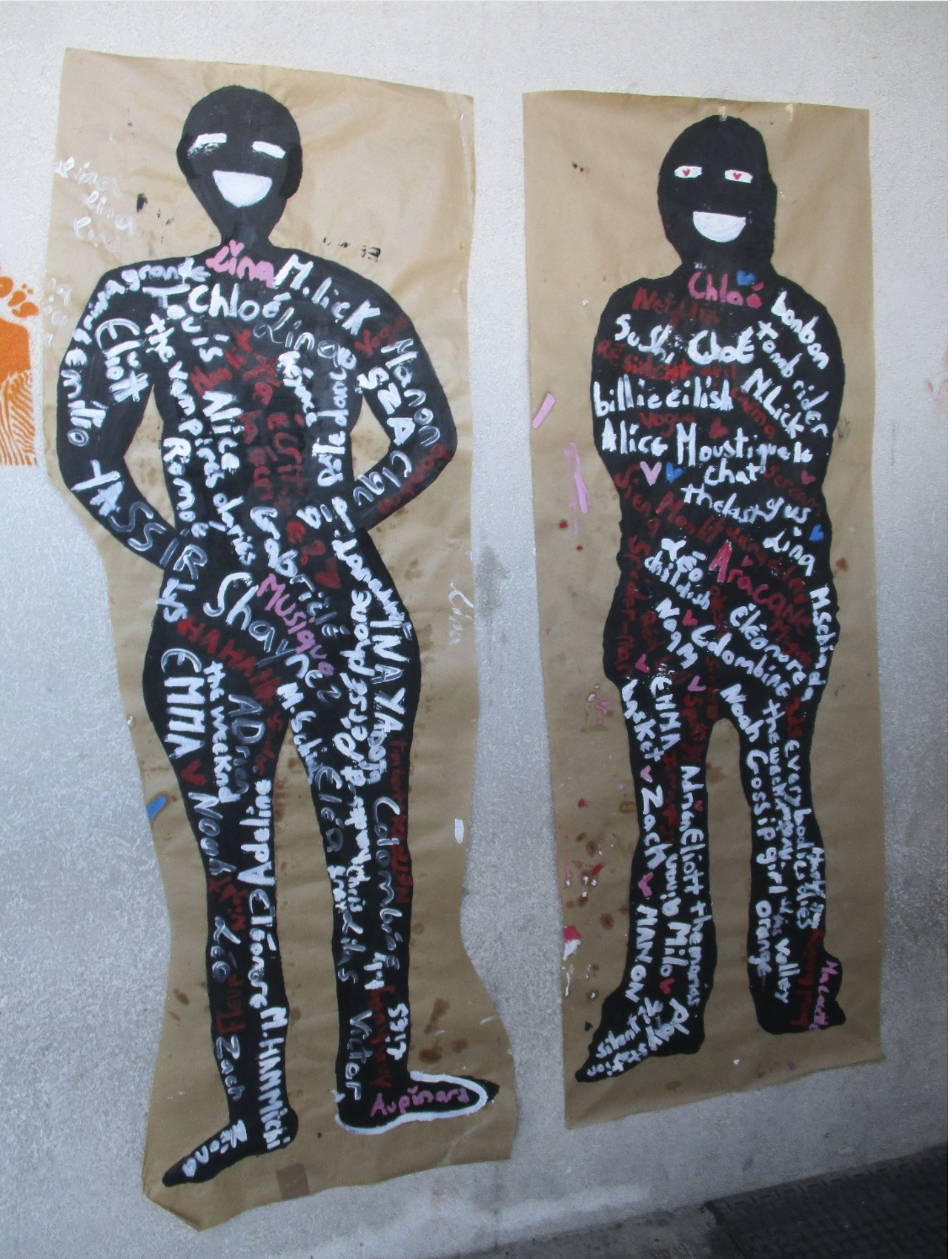 Les élèves 3e Gen, Kur et Lyn ont travaillé en collaboratif sur la consigne suivante: "Choisissez dans le collège un lieu fort de sens pour vous et réalisez une installation éphémère qui mette en scène, principalement mais non exclusivement des mots.