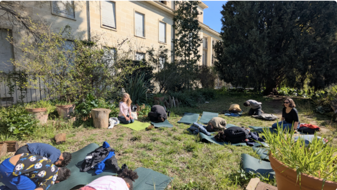 Avec l'arrivée du printemps, les élèves du dispositif ULIS ont eu le plaisir de participer à leur 1ère séance de yoga, menée par une intervenante. Calme et sérénité étaient au rendez-vous pour profiter de la douceur du soleil et du chant des oiseaux.